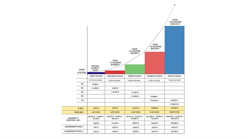 • Участники проекта получают при оплате пакета на свой счёт SCRN Coins. Соразмерно
