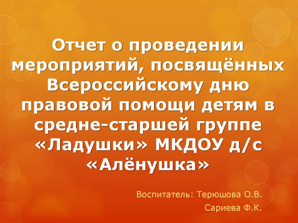 Отчет о проведении мероприятий, посвящённых Всероссийскому дню правовой помощи детям в средне-старшей группе «Ладушки»
