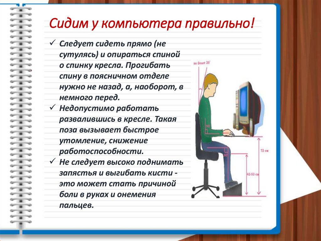 Сидим у компьютера правильно!Следует сидеть прямо (не