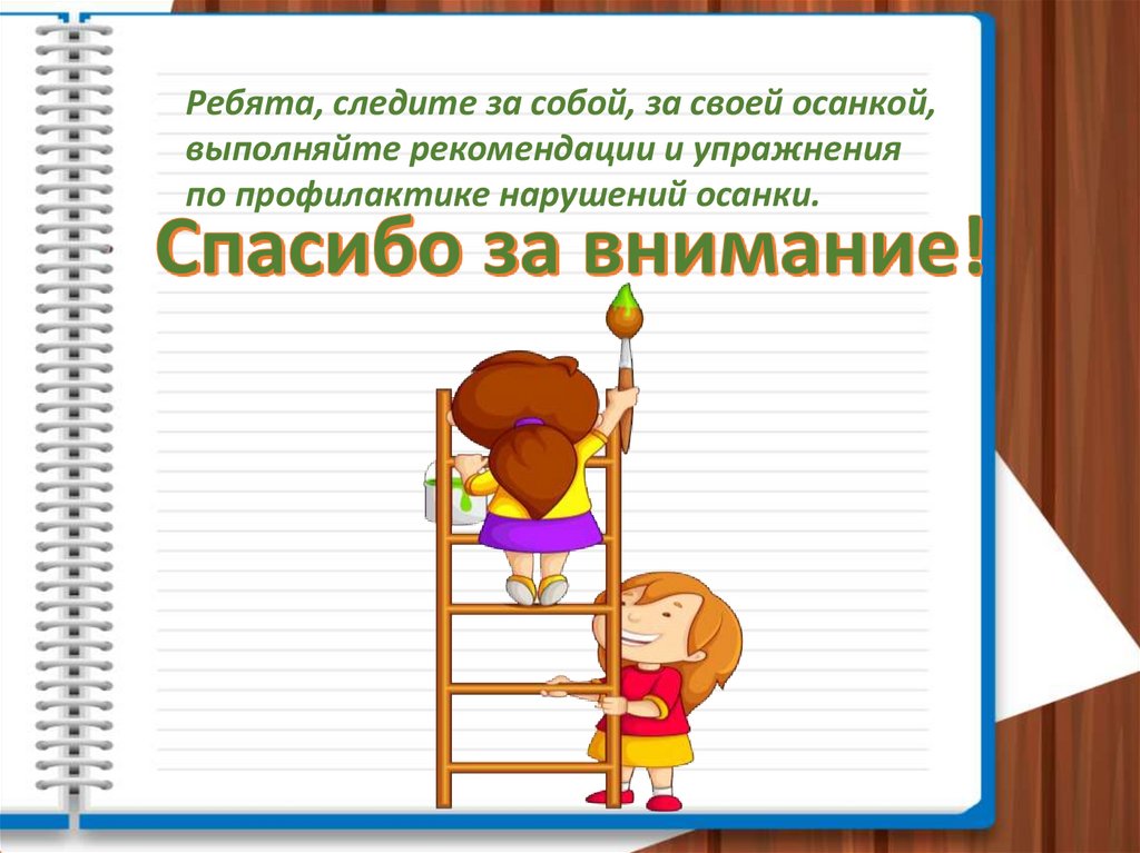 Ребята, следите за собой, за своей осанкой,выполняйте рекомендации и упражнения