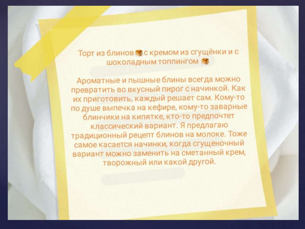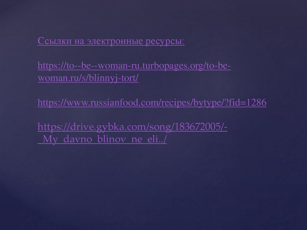 Ссылки на электронные ресурсы:https://to--be--woman-ru.turbopages.org/to-bewoman.ru/s/blinnyj-tort/