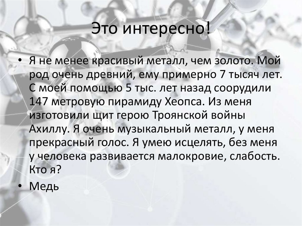 Это интересно!• Я не менее красивый металл, чем золото. Мой