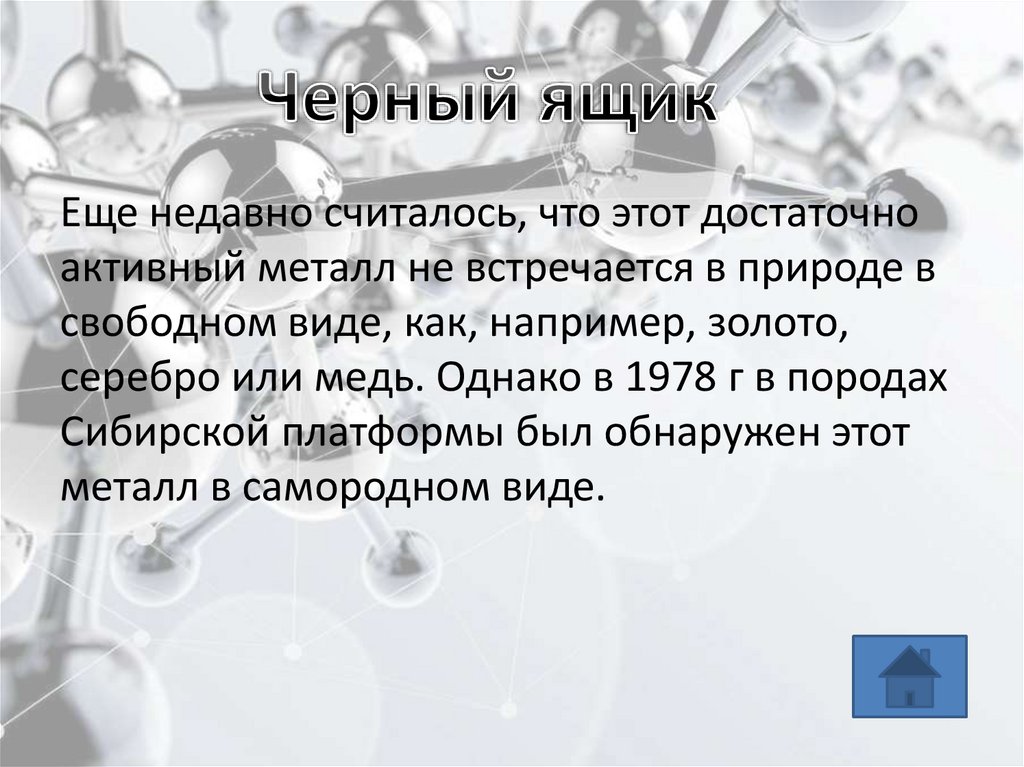 Еще недавно считалось, что этот достаточноактивный металл не встречается в природе в