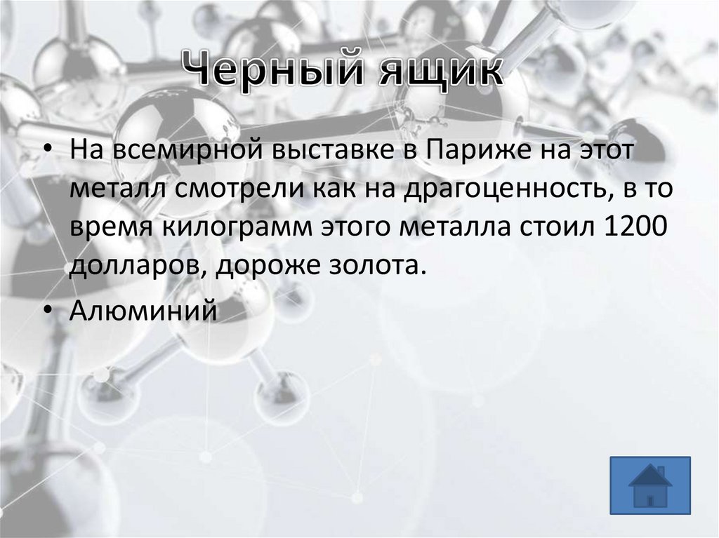 • На всемирной выставке в Париже на этотметалл смотрели как на драгоценность, в то