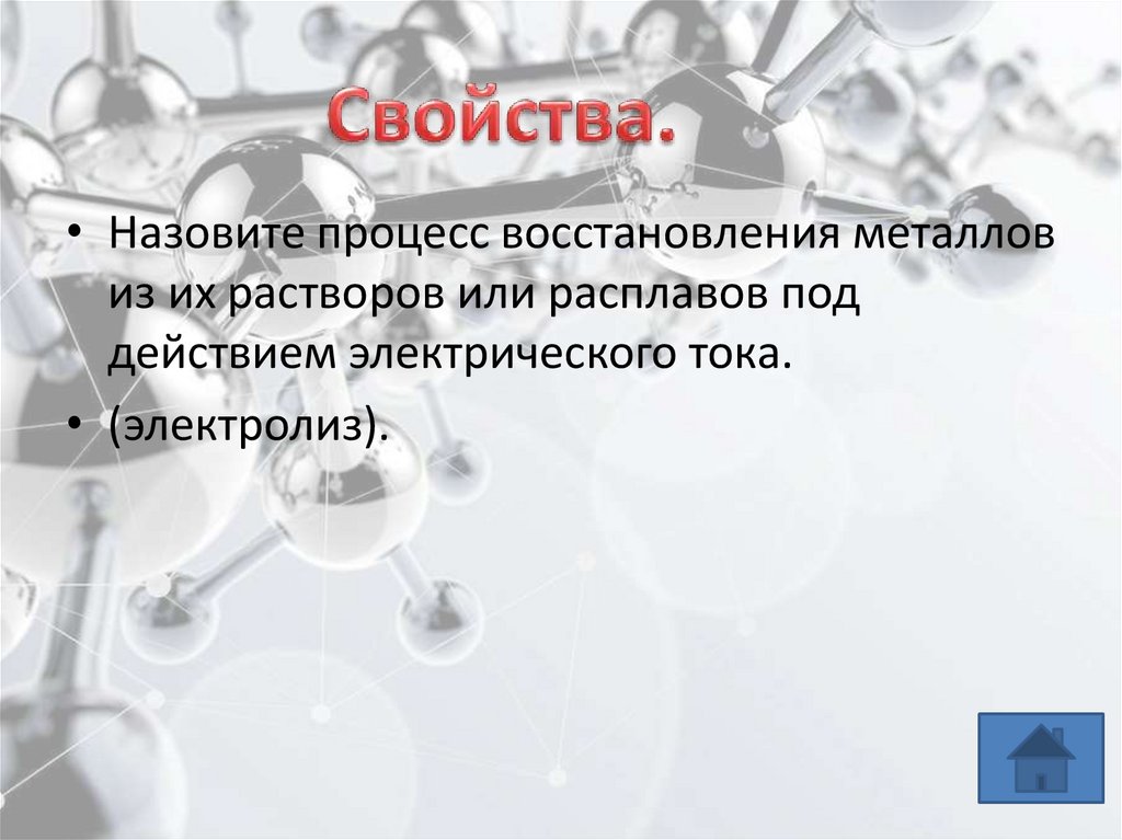 • Назовите процесс восстановления металловиз их растворов или расплавов под