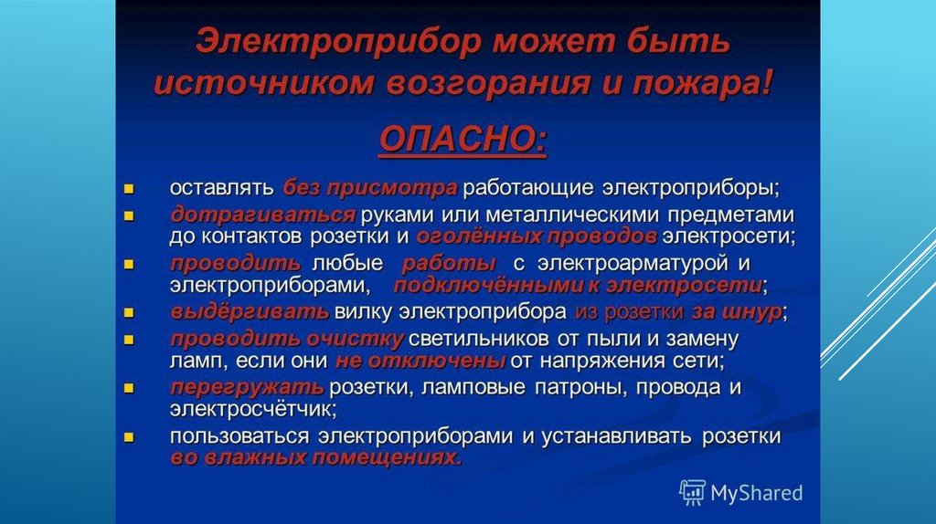 Правила безопасности при обращении с бытовыми электроприборами. Памятка для детей