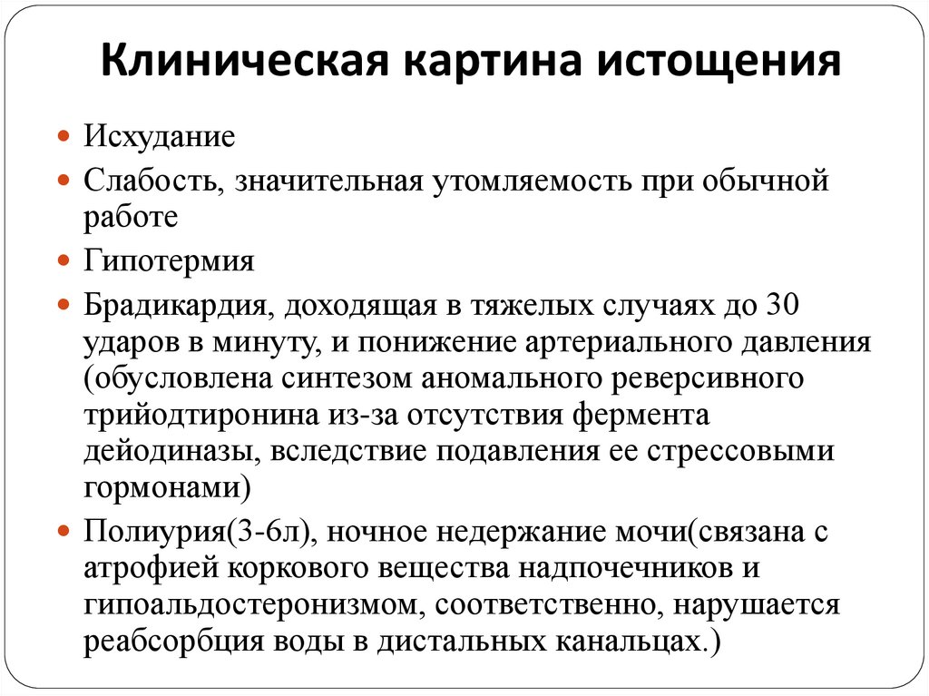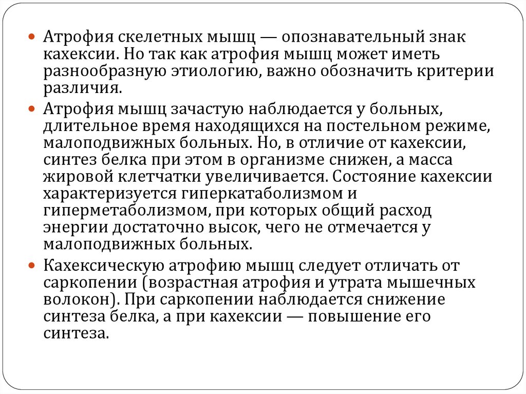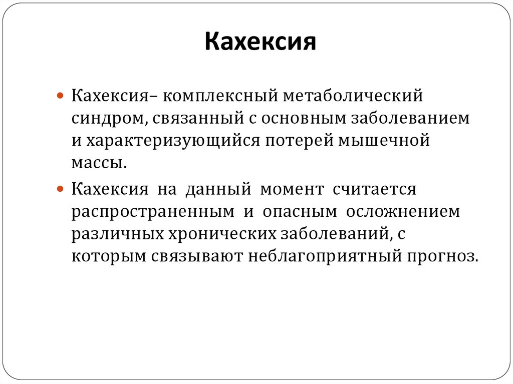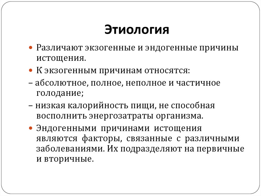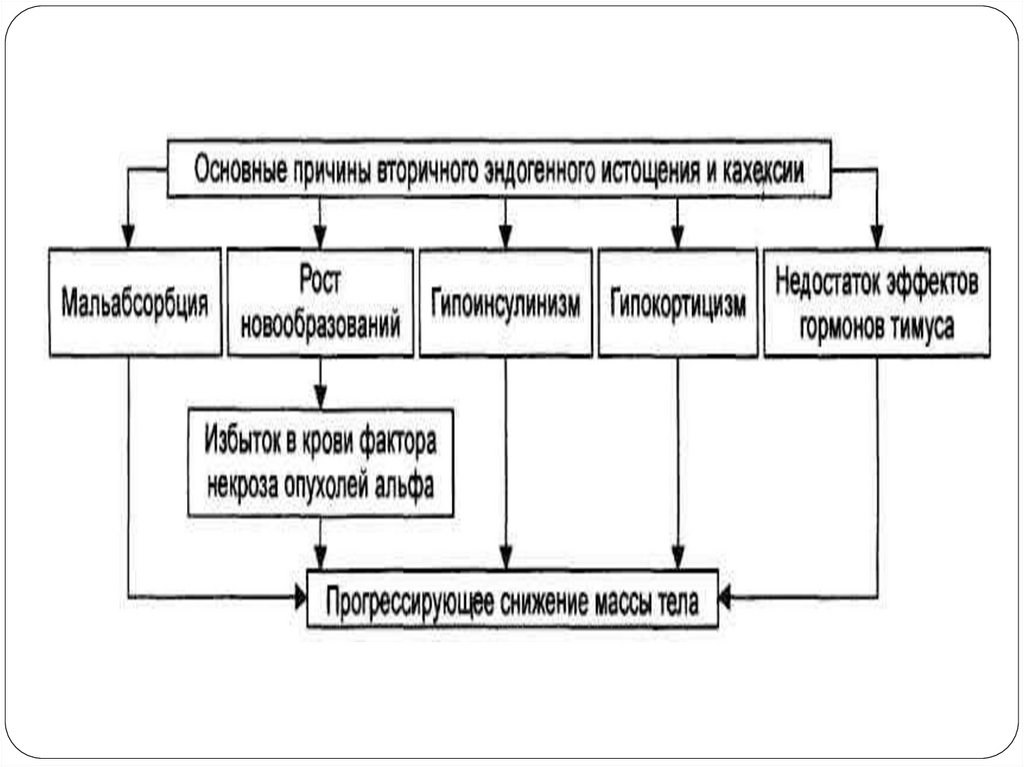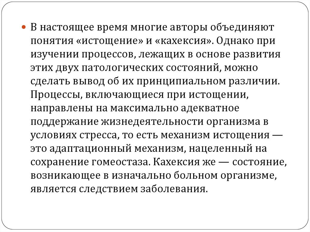В настоящее время многие авторы объединяютпонятия «истощение» и «кахексия». Однако при
