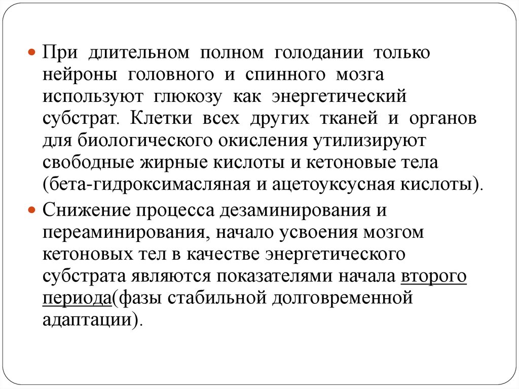 При длительном полном голодании тольконейроны головного и спинного мозга