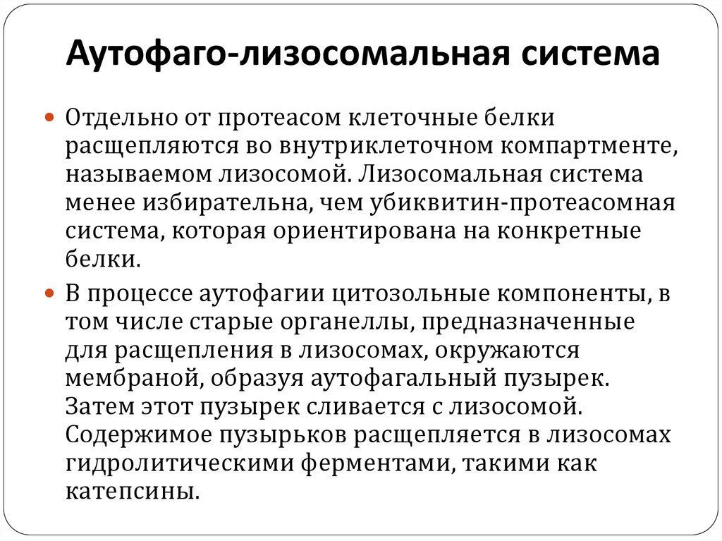 Аутофаго-лизосомальная системаОтдельно от протеасом клеточные белки