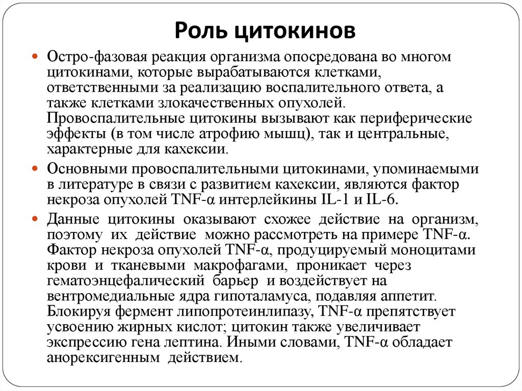 Роль цитокиновОстро-фазовая реакция организма опосредована во многом