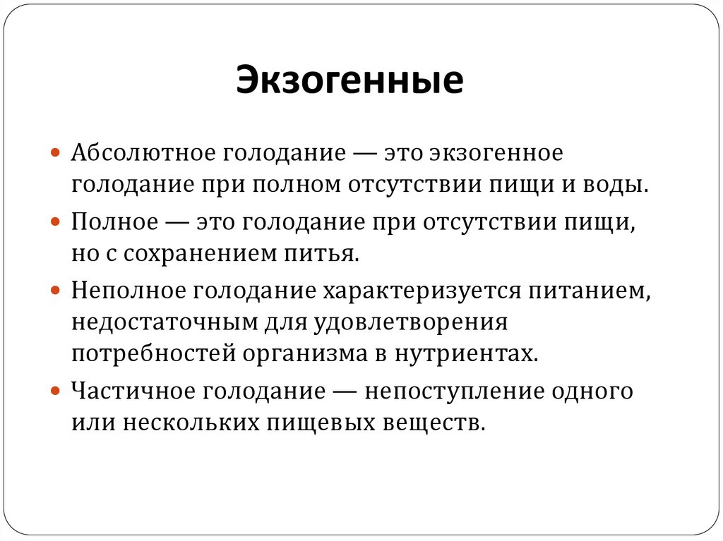 ЭкзогенныеАбсолютное голодание — это экзогенное