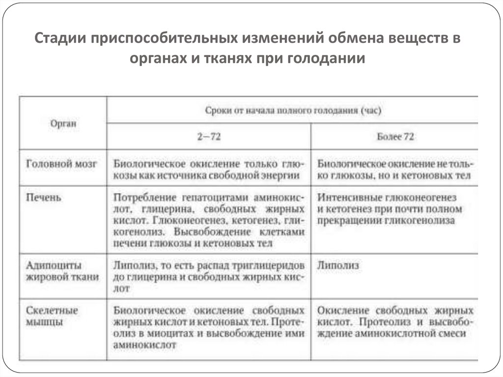 Стадии приспособительных изменений обмена веществ ворганах и тканях при голодании