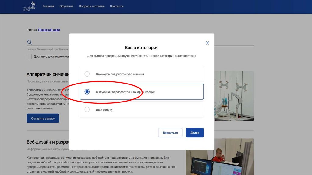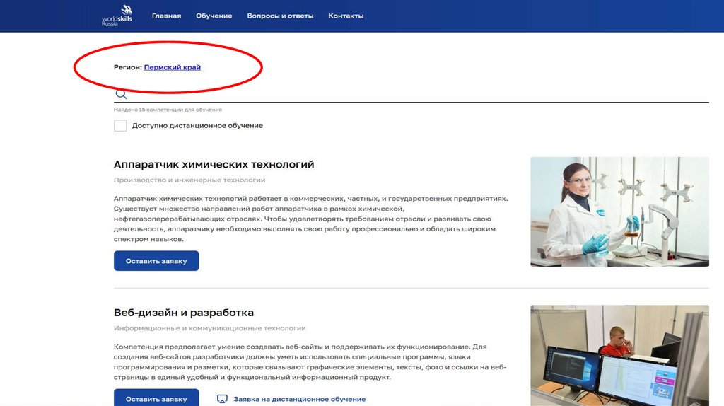 • 3. Попадаем в табличку «Регион обучения». Выбираем - Пермский край.
