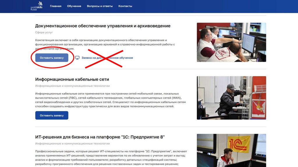 управления и архивоведение»)». Нажимаем на иконку «Оставить заявку»