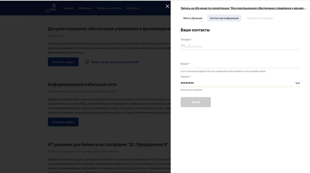 • 5. Проваливаемся во вкладку «Запись на обучение по компетенции «Документационное обеспечение управления и
