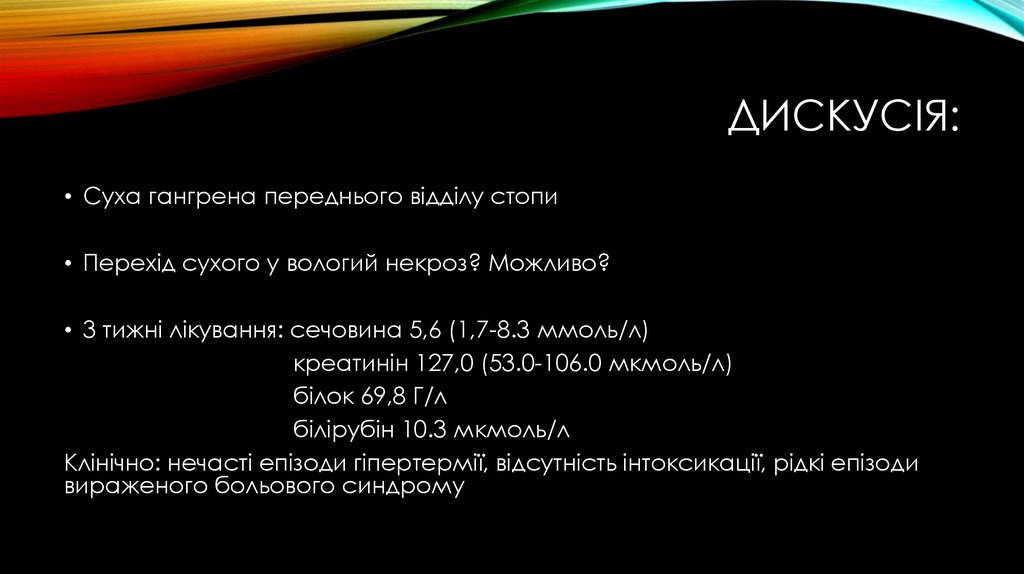 ДИСКУСІЯ:• Суха гангрена переднього відділу стопи