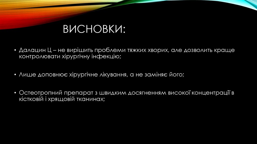 ВИСНОВКИ:• Далацин Ц – не вирішить проблеми тяжких хворих, але дозволить краще