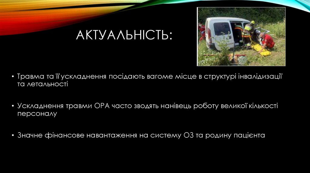 АКТУАЛЬНІСТЬ:• Травма та її ускладнення посідають вагоме місце в структурі інвалідизації