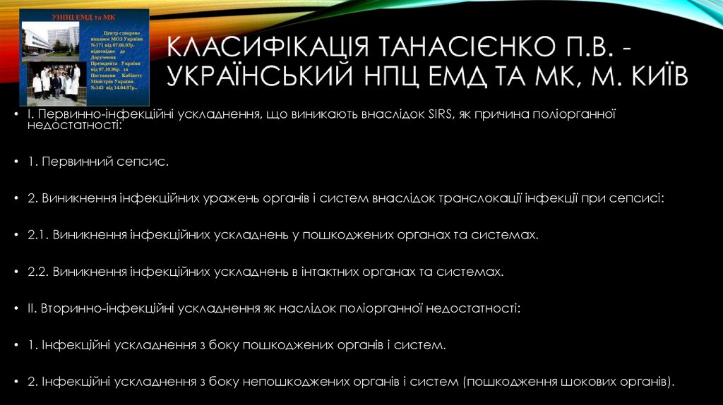 • ІІ. Вторинно-інфекційні ускладнення як наслідок поліорганної недостатності: