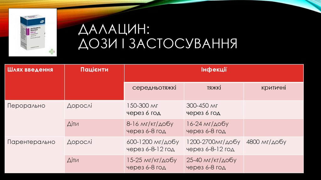 ДАЛАЦИН:ДОЗИ І ЗАСТОСУВАННЯ