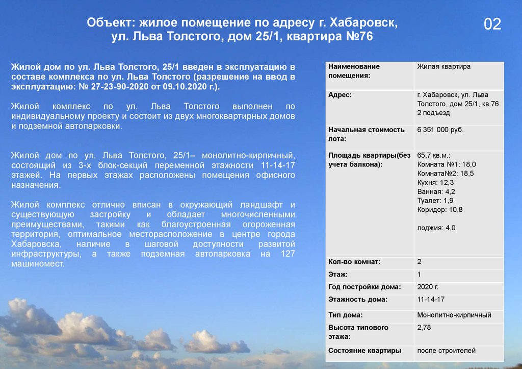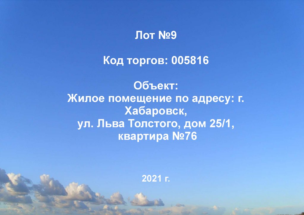 Объект: жилое помещение по адресу г. Хабаровск,ул. Льва Толстого, дом 25/1, квартира №76