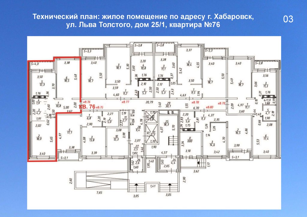 Технический план: жилое помещение по адресу г. Хабаровск,ул. Льва Толстого, дом 25/1, квартира №76