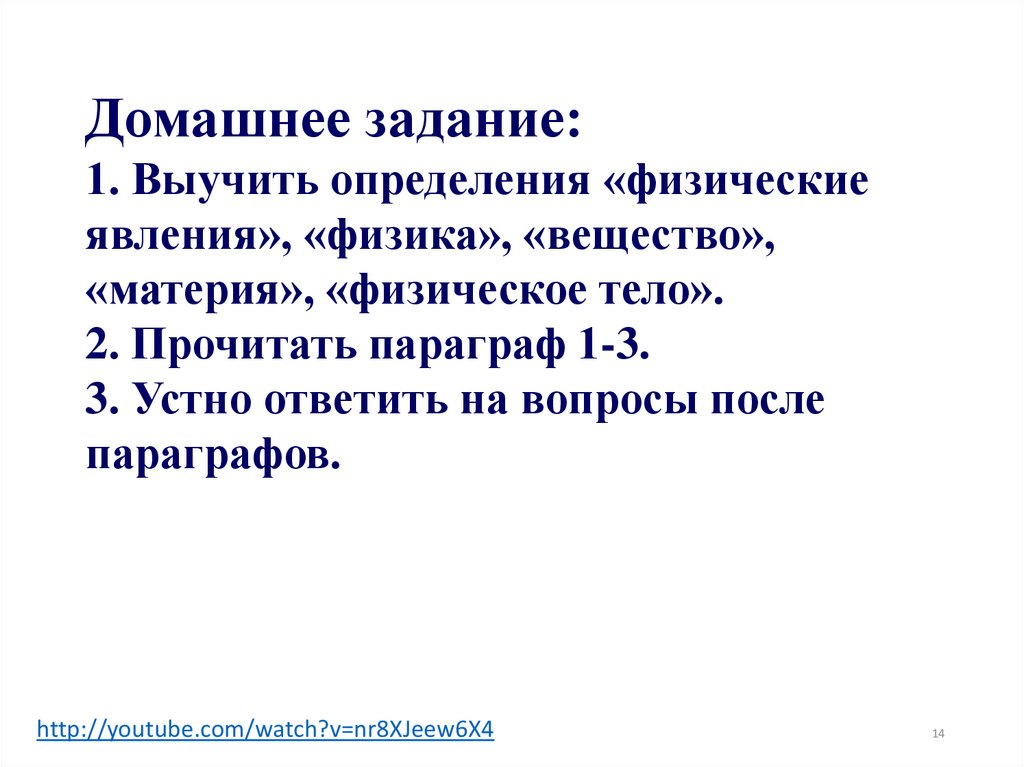 Домашнее задание:1. Выучить определения «физические
