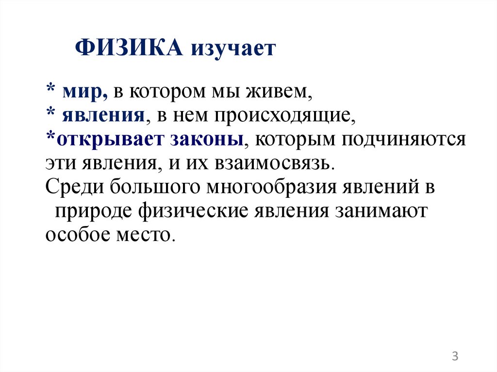 ФИЗИКА изучает* мир, в котором мы живем,