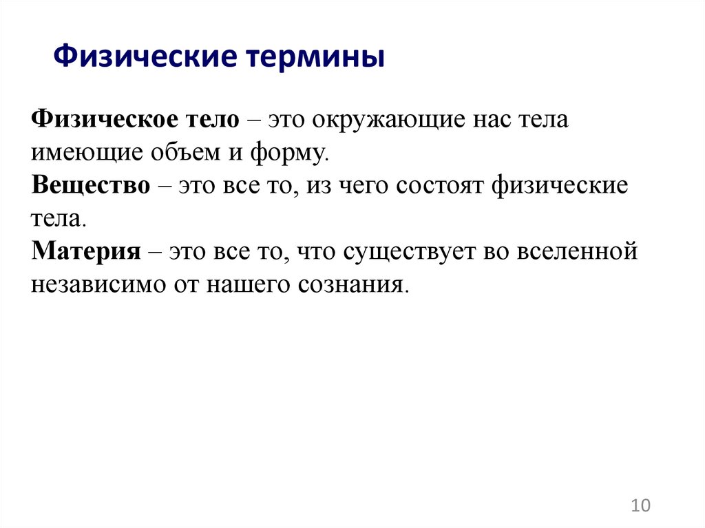 Физические терминыФизическое тело – это окружающие нас тела