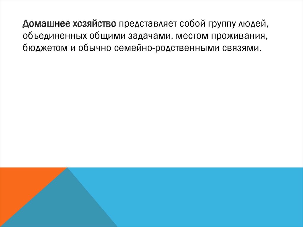 Домашнее хозяйство представляет собой группу людей,объединенных общими задачами, местом проживания,