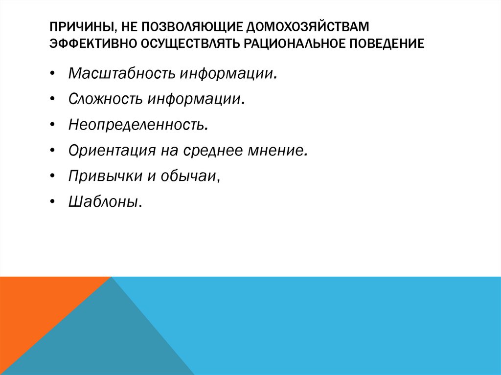 ПРИЧИНЫ, НЕ ПОЗВОЛЯЮЩИЕ ДОМОХОЗЯЙСТВАМЭФФЕКТИВНО ОСУЩЕСТВЛЯТЬ РАЦИОНАЛЬНОЕ ПОВЕДЕНИЕ