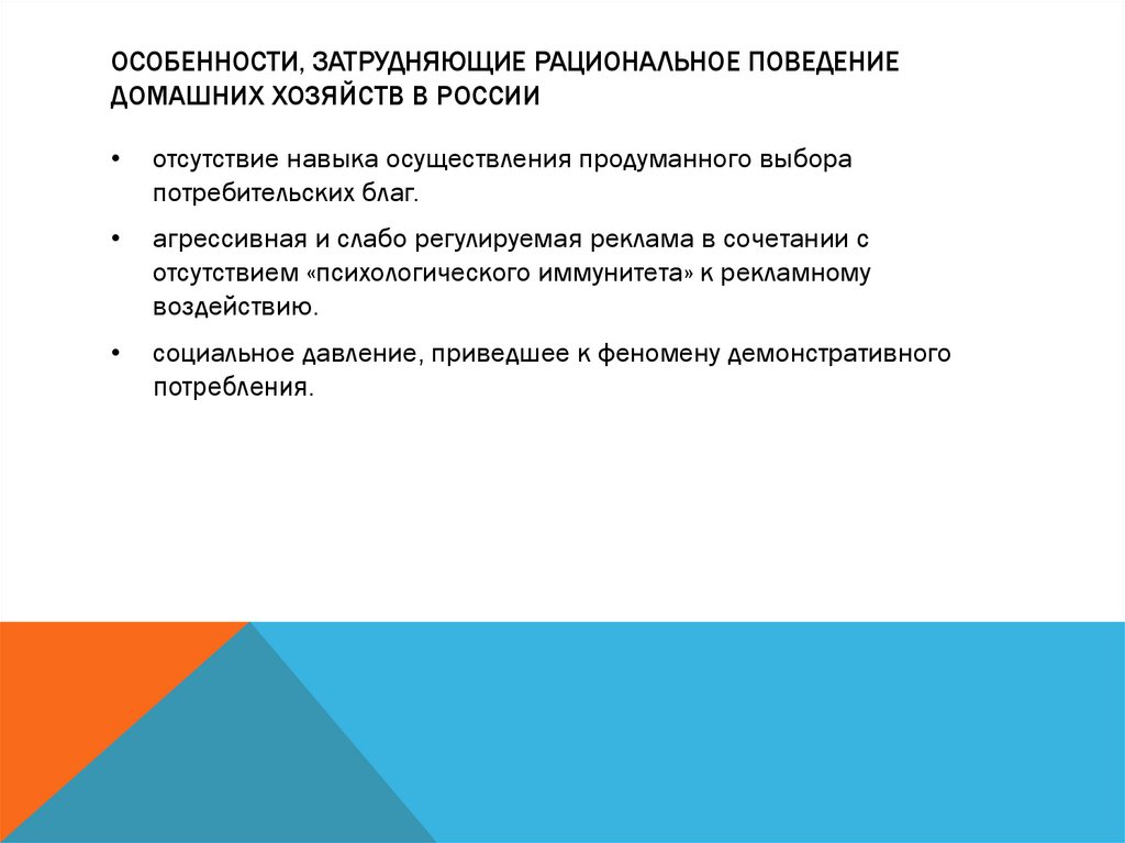 ОСОБЕННОСТИ, ЗАТРУДНЯЮЩИЕ РАЦИОНАЛЬНОЕ ПОВЕДЕНИЕДОМАШНИХ ХОЗЯЙСТВ В РОССИИ