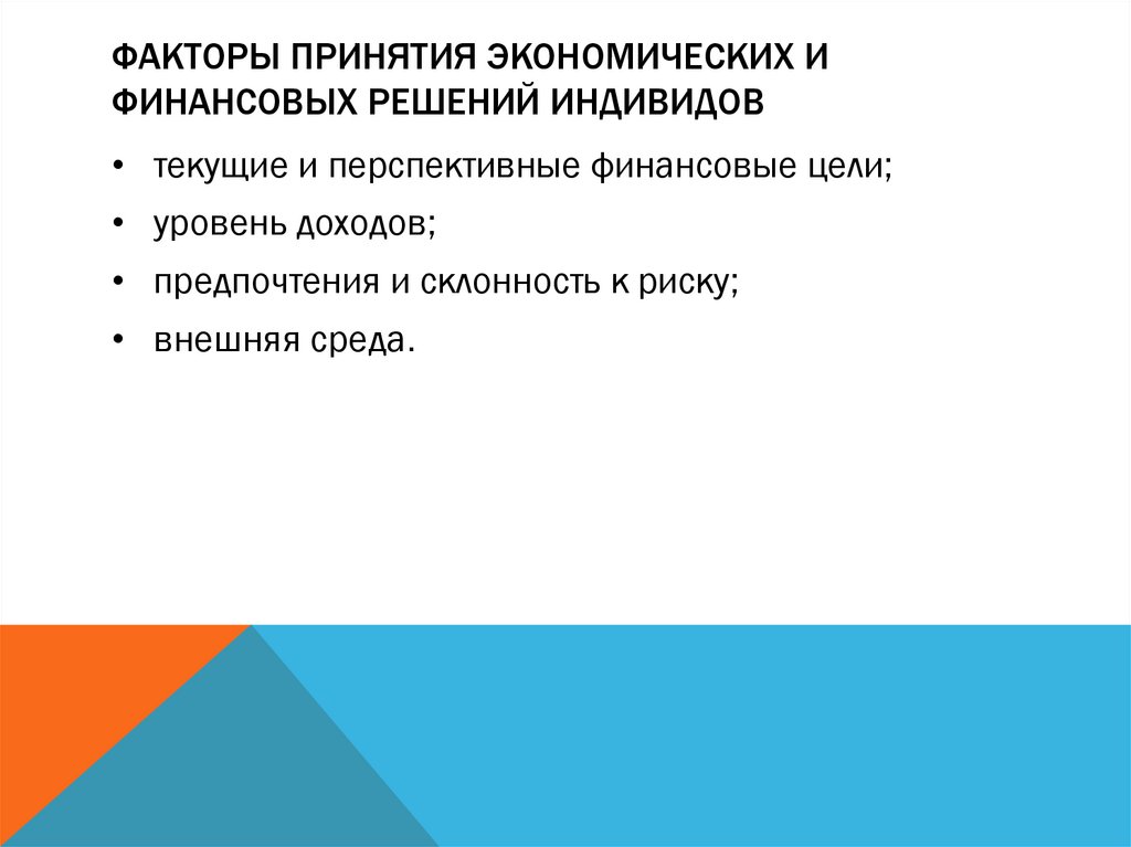 ФАКТОРЫ ПРИНЯТИЯ ЭКОНОМИЧЕСКИХ ИФИНАНСОВЫХ РЕШЕНИЙ ИНДИВИДОВ