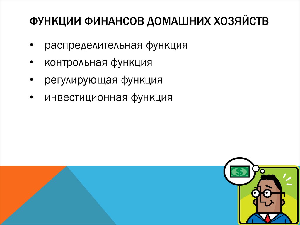 ФУНКЦИИ ФИНАНСОВ ДОМАШНИХ ХОЗЯЙСТВраспределительная функция