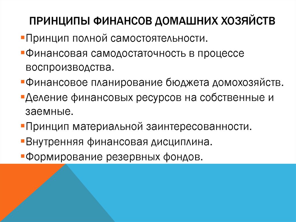 ПРИНЦИПЫ ФИНАНСОВ ДОМАШНИХ ХОЗЯЙСТВПринцип полной самостоятельности.