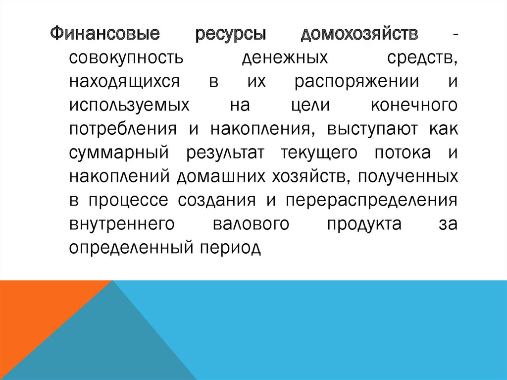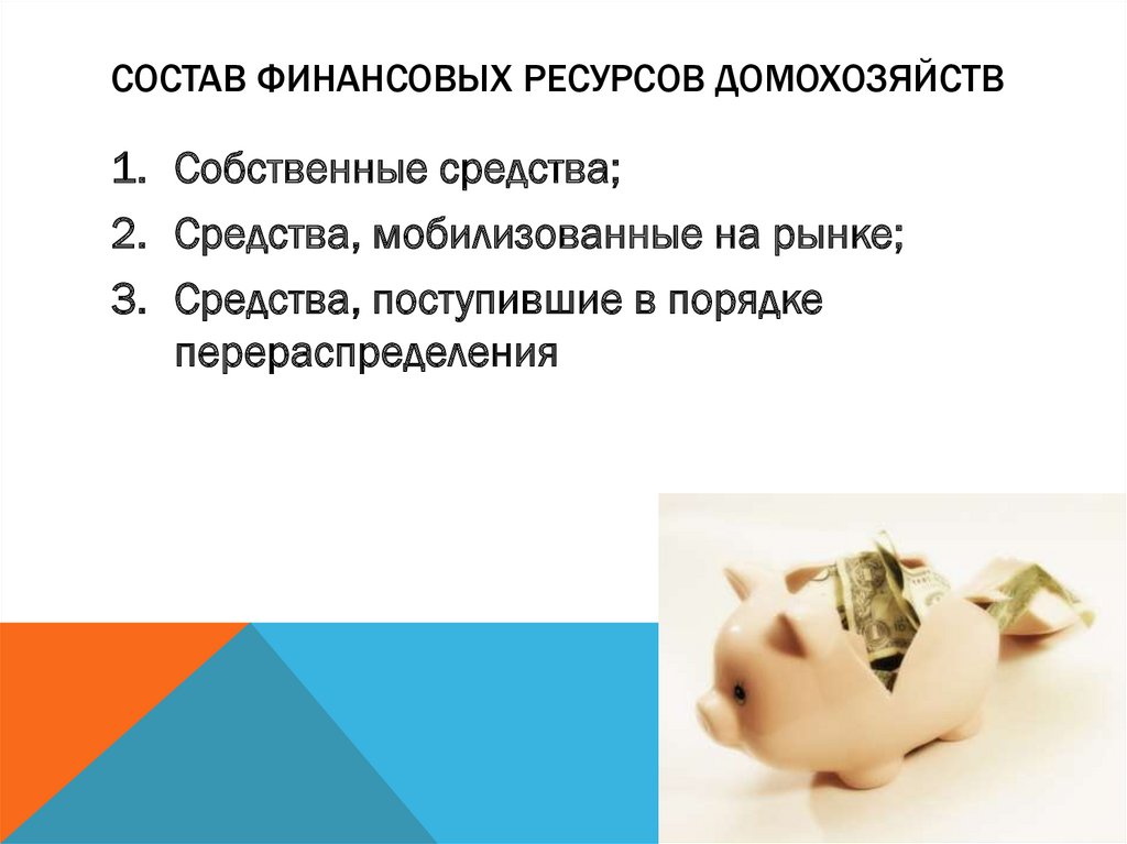 СОСТАВ ФИНАНСОВЫХ РЕСУРСОВ ДОМОХОЗЯЙСТВ1. Собственные средства;