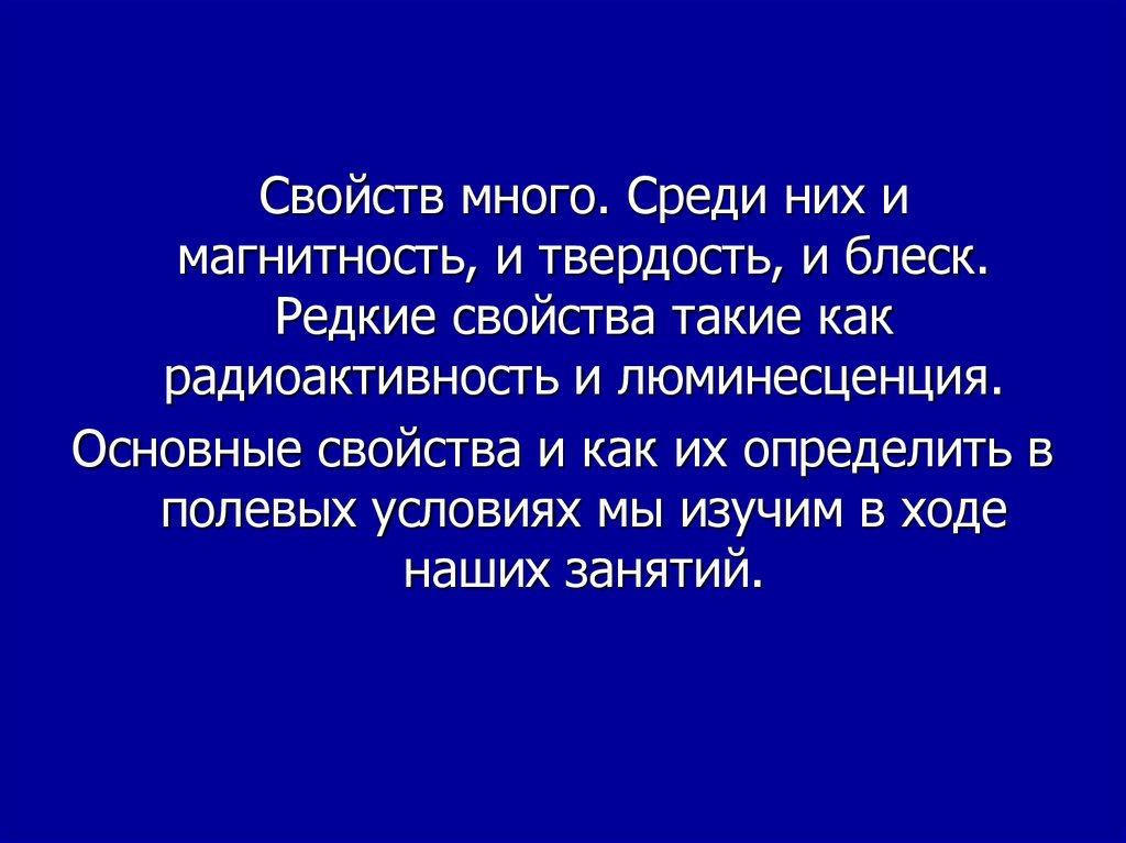 Свойств много. Среди них имагнитность, и твердость, и блеск.