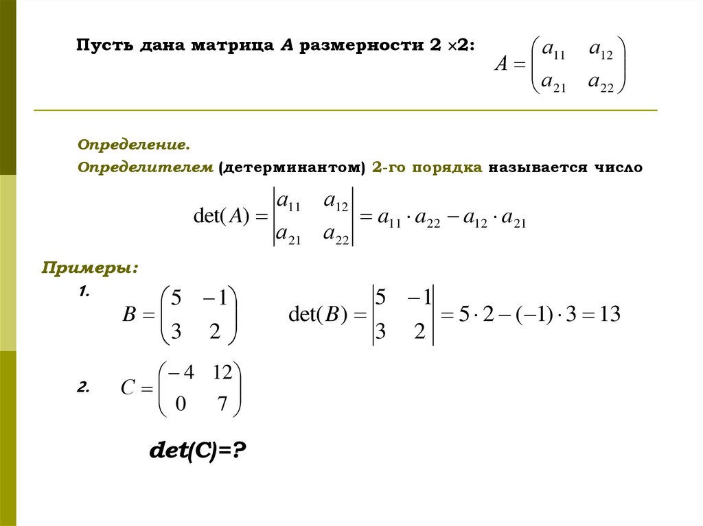 1. Выпишете определение 2 порядка.2. Вычислите определитель матрицы С