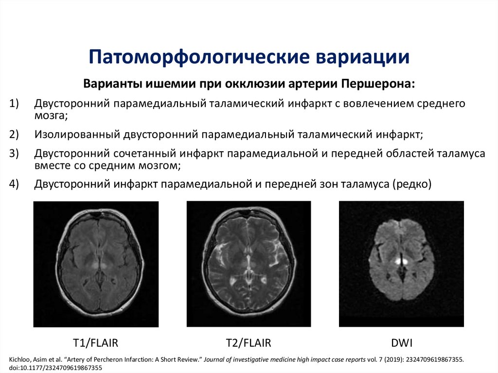 Патоморфологические вариацииВарианты ишемии при окклюзии артерии Першерона: