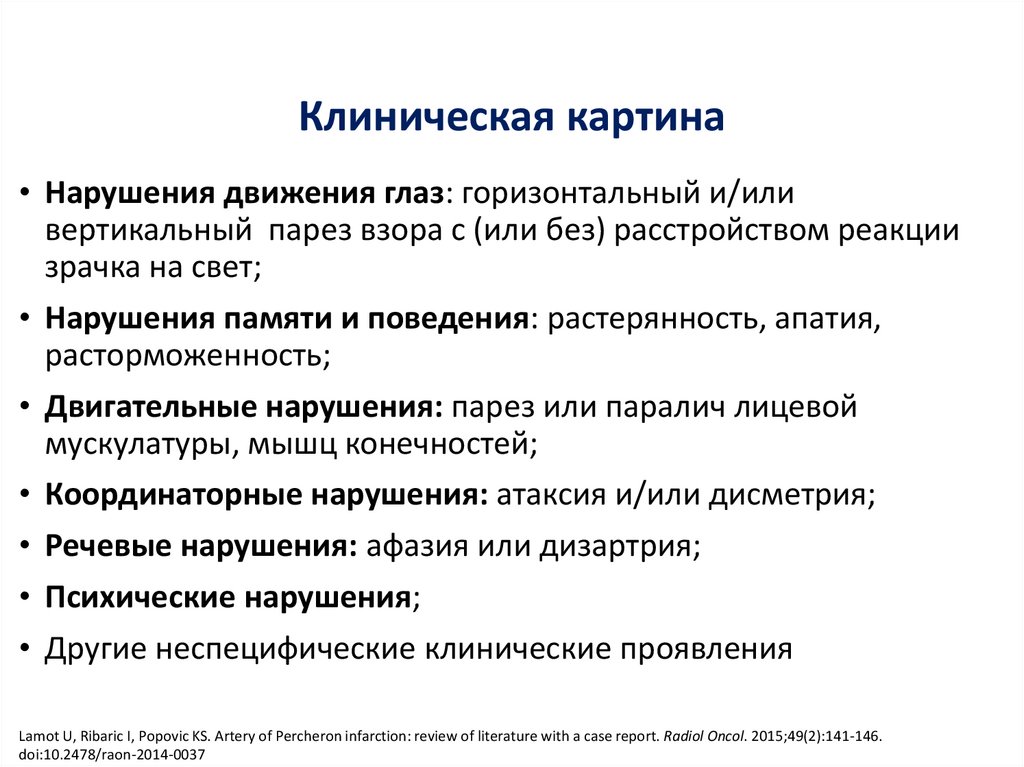 Инфаркт головного мозга вбассейне артерии Першерона