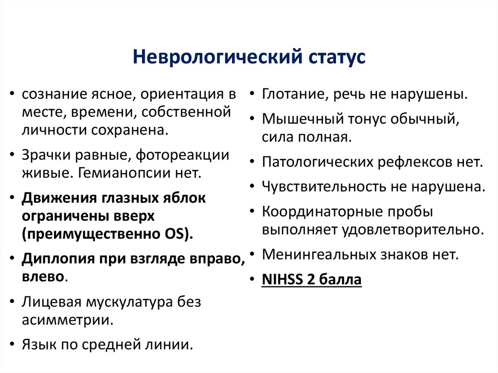 • NIHSS 2 балла
