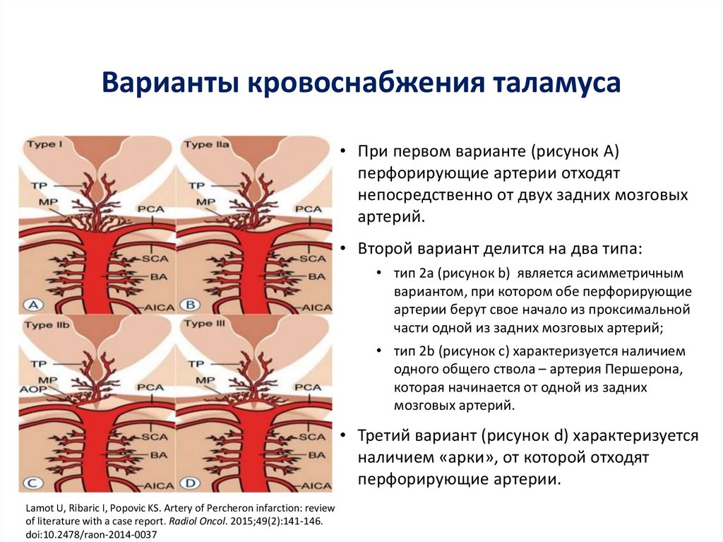 Варианты кровоснабжения таламуса• При первом варианте (рисунок А)