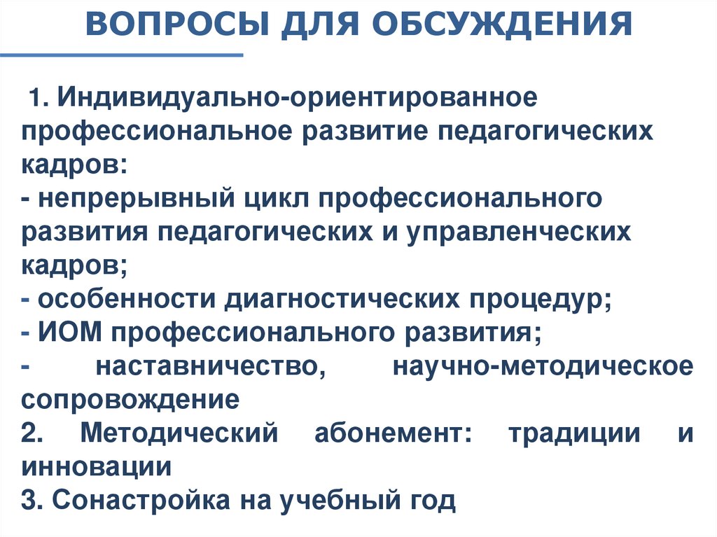 ВОПРОСЫ ДЛЯ ОБСУЖДЕНИЯ1. Индивидуально-ориентированное