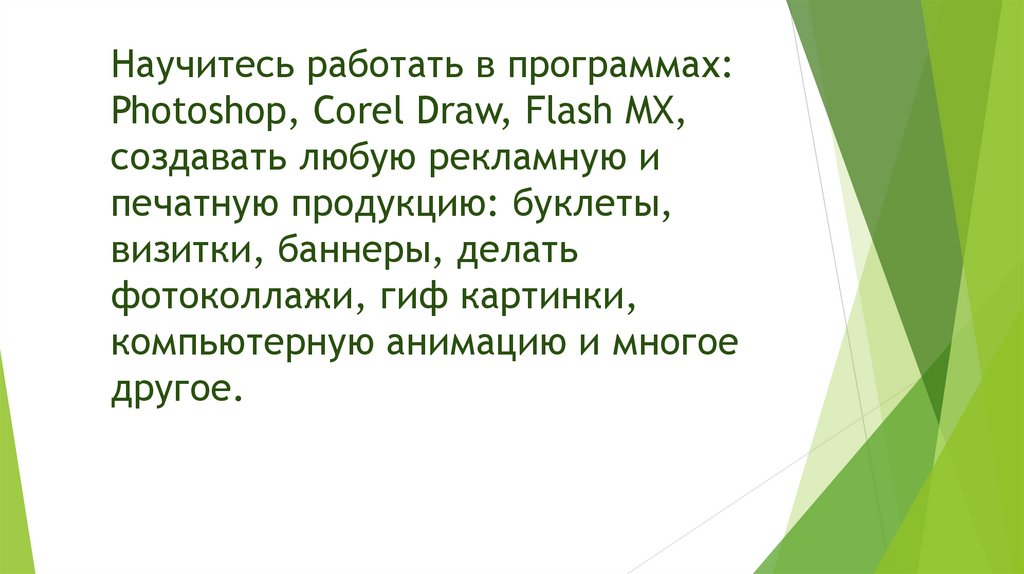 Научитесь работать в программах:Photoshop, Corel Draw, Flash MX,