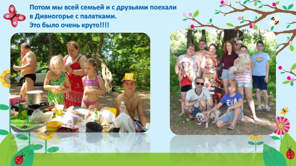 Потом мы всей семьей и с друзьями поехалив Дивногорье с палатками.