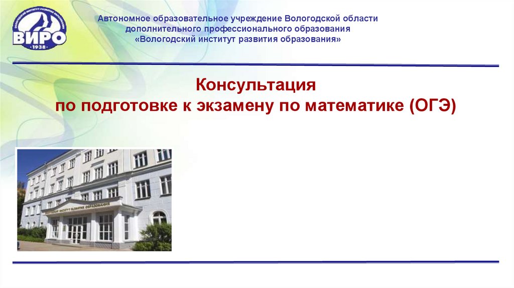 «Вологодский институт развития образования». Консультация по подготовке к экзамену по математике (ОГЭ)