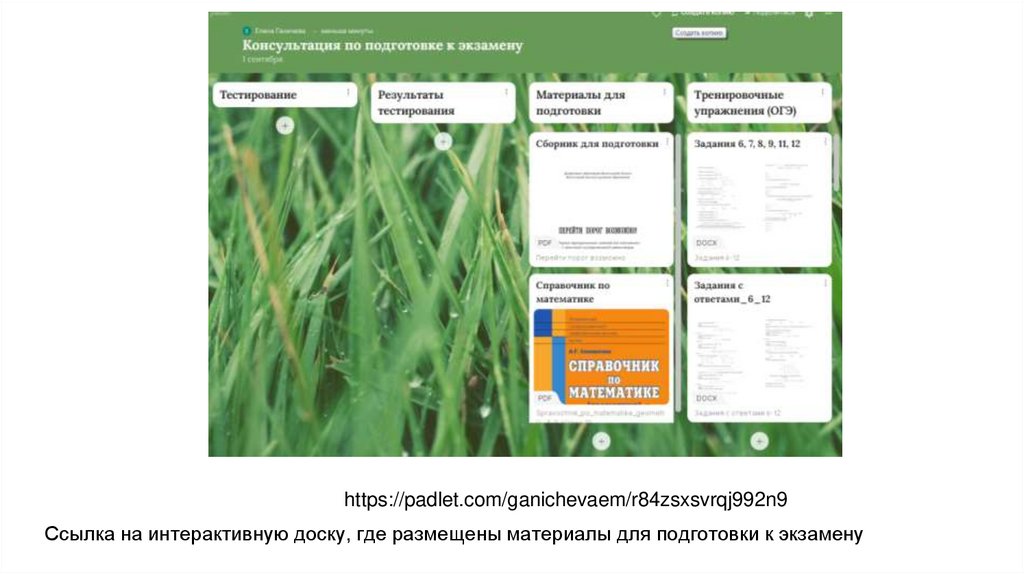 https://padlet.com/ganichevaem/r84zsxsvrqj992n9Ссылка на интерактивную доску, где размещены материалы для подготовки к экзамену