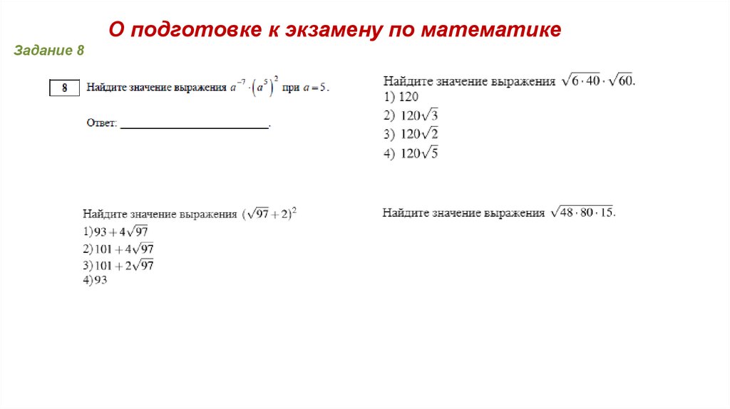 О подготовке к экзамену по математикеЗадание 8