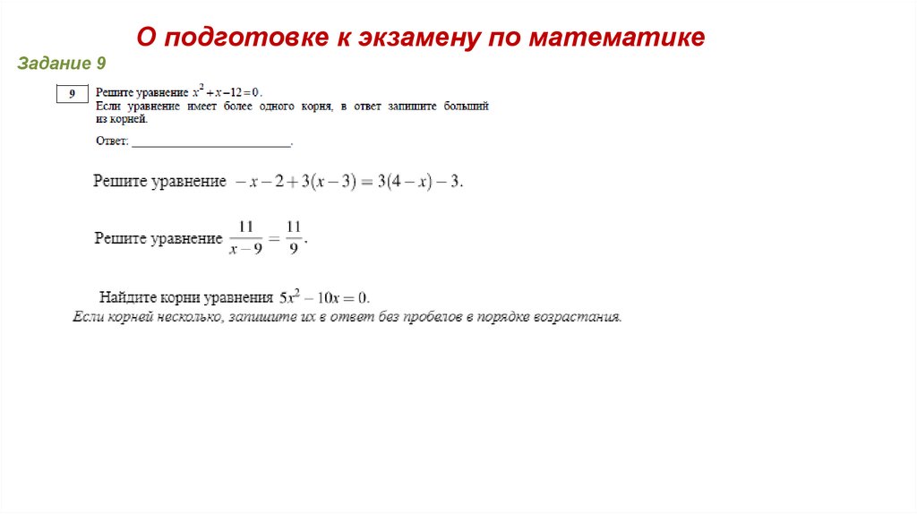 О подготовке к экзамену по математикеЗадание 9