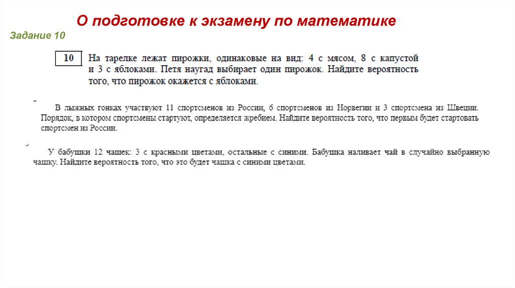 О подготовке к экзамену по математикеЗадание 10